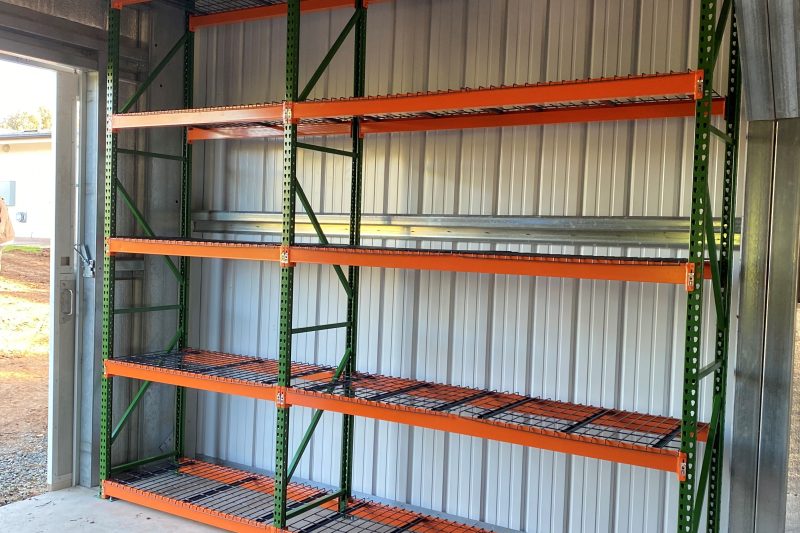C&SS designed and installed custom industrial shelving for a ranch warehouse to hold live goods and gardening tools.