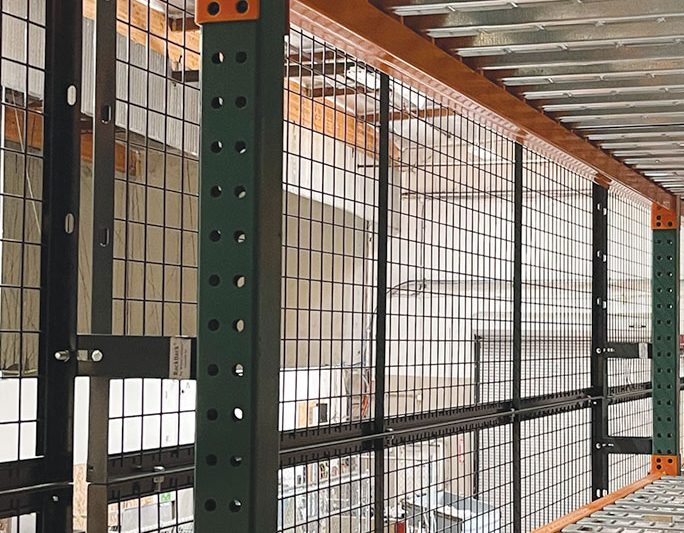 The bottom beam levels remained clear so employees could access the lower levels for packaging supplies, labeling equipment, and utilize workstations. The intermediate levels were protected with wire partition panels that were attached to the rack with offset brackets. The very top beam level used different panel heights to stagger around the overhead obstruction. The custom solution created a safe work environment. For other ideas on how to use Rack Back for Fall Protection, visit WireCrafters website.
