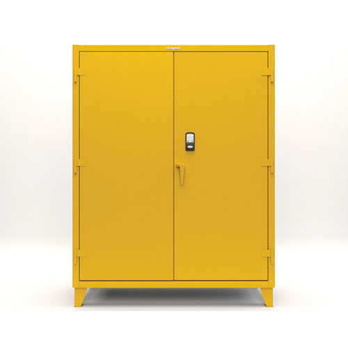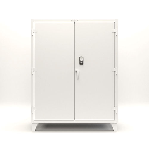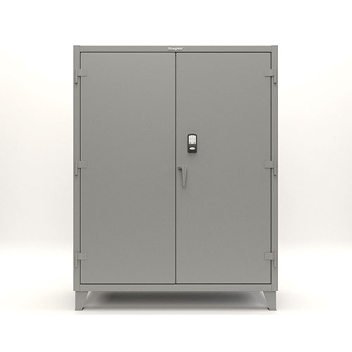 Introducing the tough Extreme Duty Strong Hold cabinet, now with a cool keypad for easy access. It’s built super strong for busy industrial places, holding up to 11,000 lbs in total. Each shelf can handle a hefty 1950 lbs and you can move them around too.