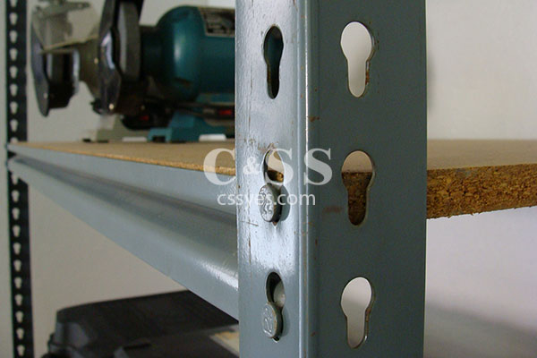 Rapid Rack heavy duty angle post (APH) are used for maximum weight capacity. Rapid Rack’s APH are 1-7/8″ x 1-7/8″, 14 gage, and are punched on 1-1/2″ centers for shelf adjustment. Heavy duty angle posts can be used in mezzanine and shelf supported catwalk storage systems.